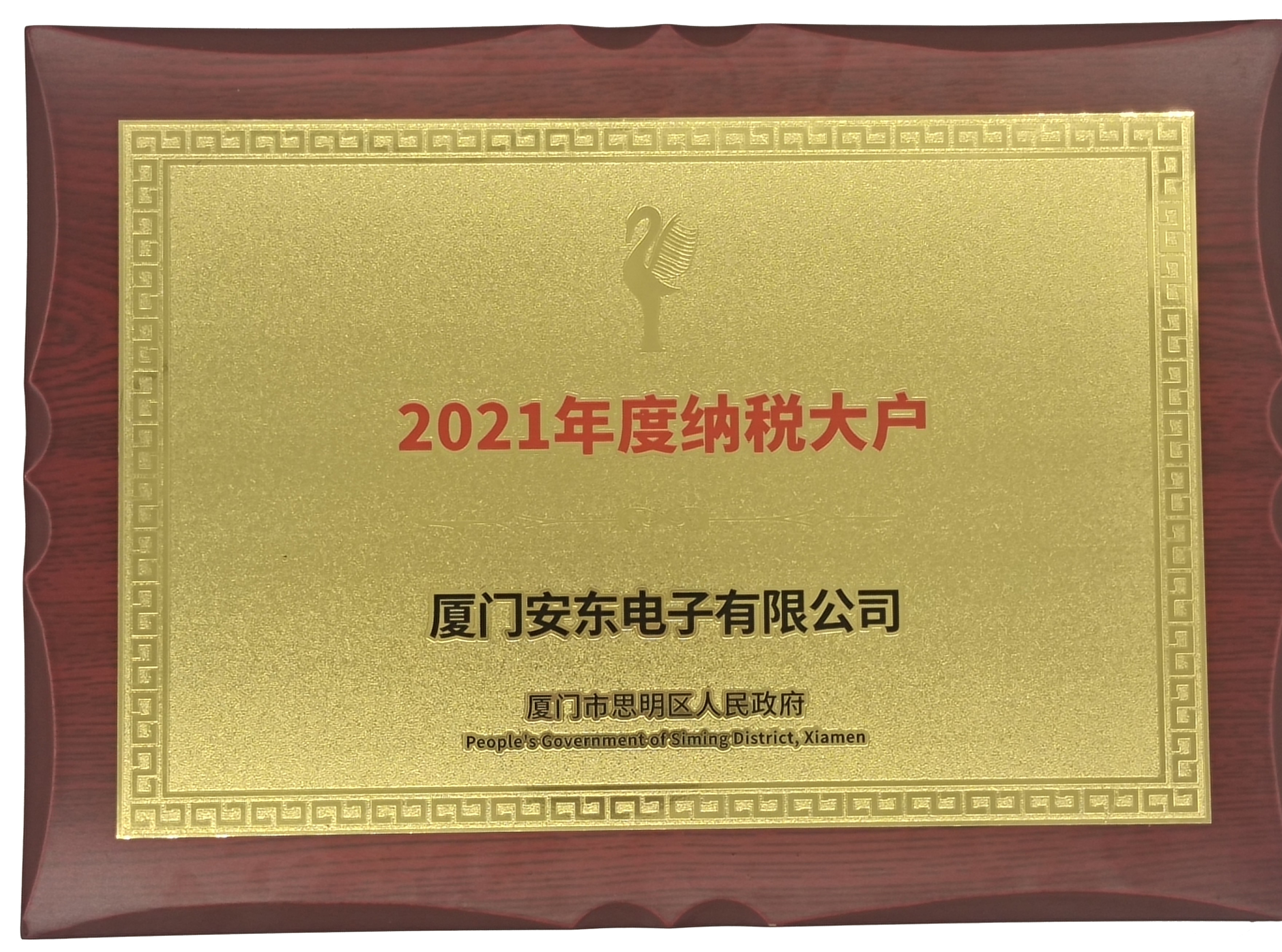 廈門安東電子榮獲2021年度“納稅大戶”企業(yè)