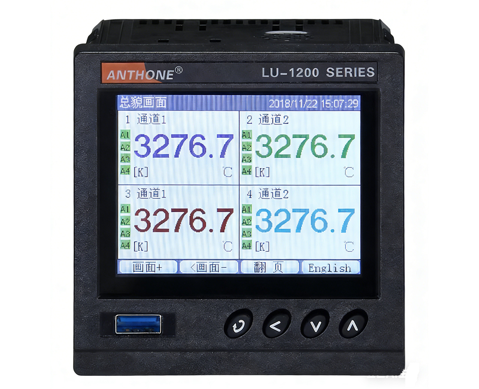 LU-R/C1400系列智能無紙記錄儀集記錄與控制于一身,具有全切換萬能輸入:熱電偶、熱電阻、標(biāo)準(zhǔn)電壓和標(biāo)準(zhǔn)電流等信號(hào);輸出控制方式有 PID 控制、位式控制、自整定控制和手動(dòng)控制等。