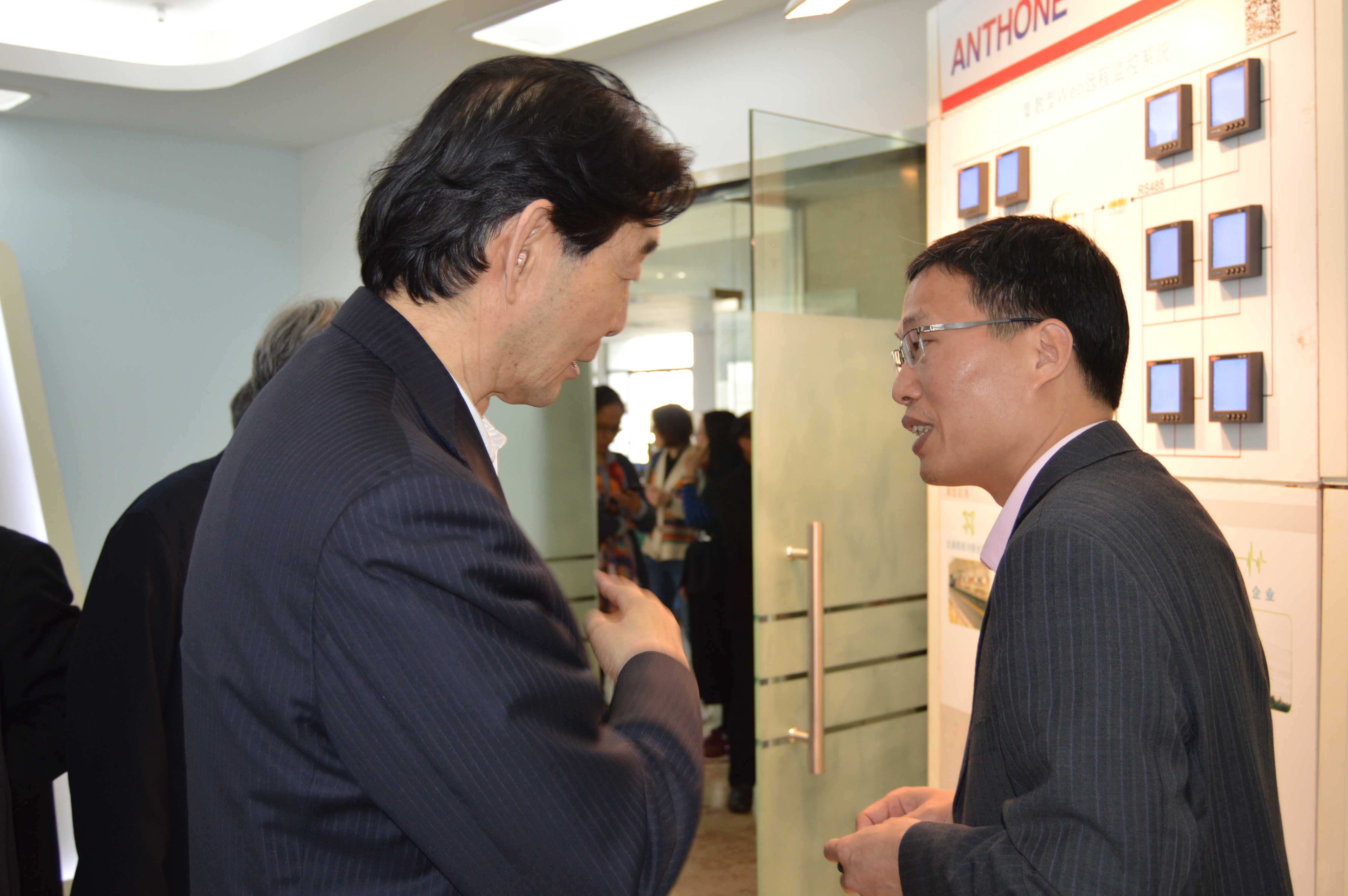 隨后,在肖總經(jīng)理的陪同下,學(xué)會代表們參觀了我司產(chǎn)品展覽廳,吳副理事長具體詢問了我司液晶電力監(jiān)測儀和智能型觸摸屏無紙記錄儀的相關(guān)信息,在了解后對我司智能型觸摸屏無紙記錄儀的革命性技術(shù)創(chuàng)新十分感興趣。